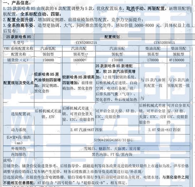 长城哈弗:2025款H5将上市!内部文件曝光!价格认可吗?
